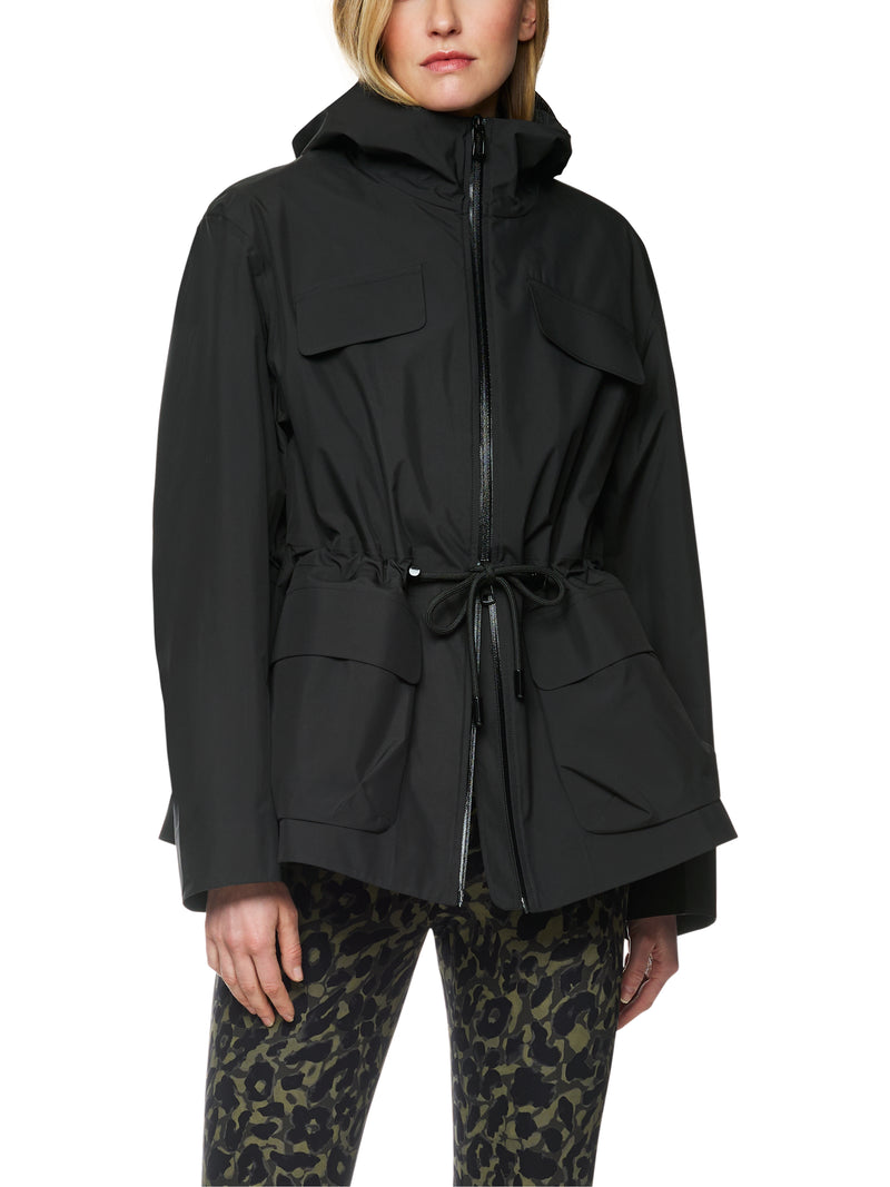 מעיל בגזרה ישרה עם צווארון גבוה, קפוצ'ון ורוכסן