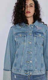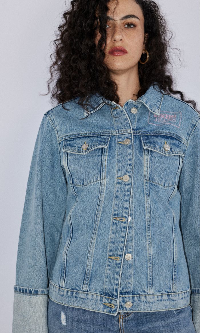 ג'קט ג'ינס עם כיסים ולוגו ורוד מוסקינו