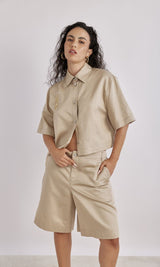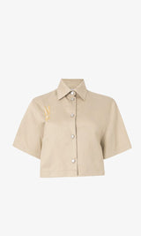 חולצה גזרת קרופ מכופתרת בעיטור אטב מוזהב