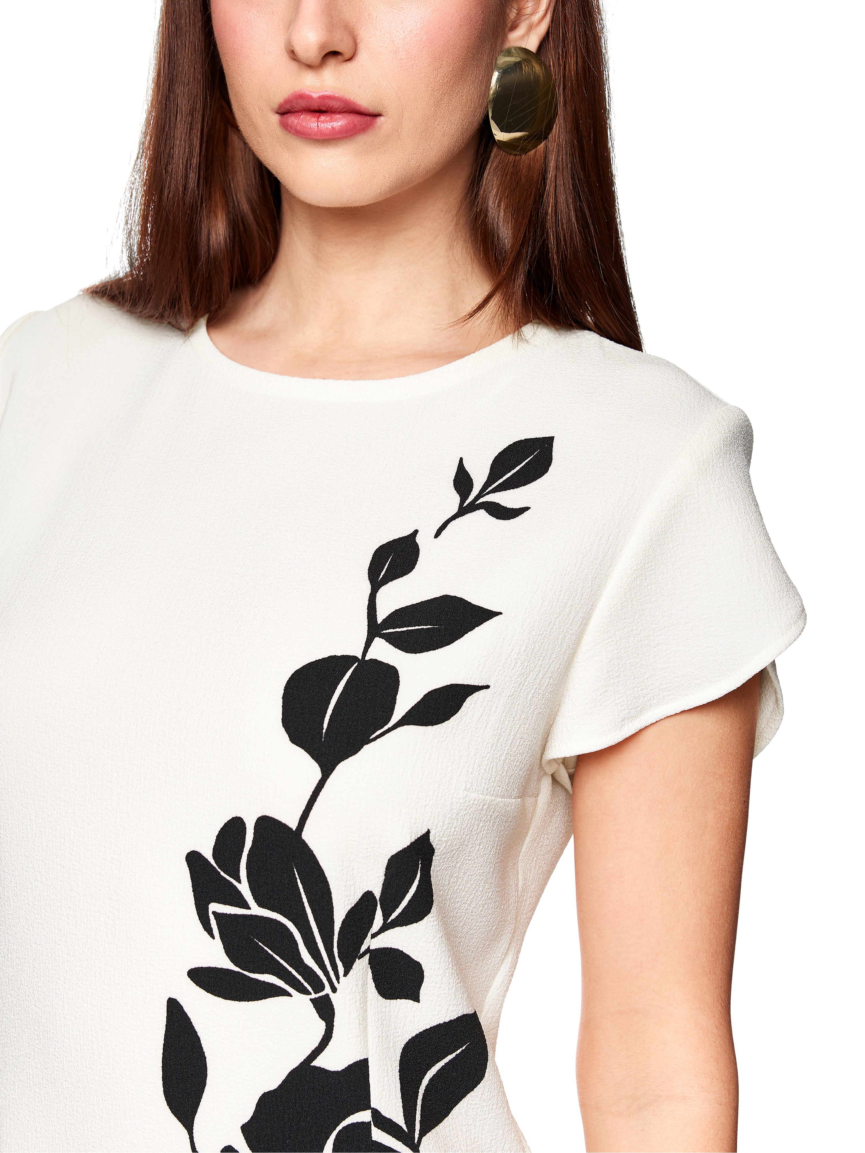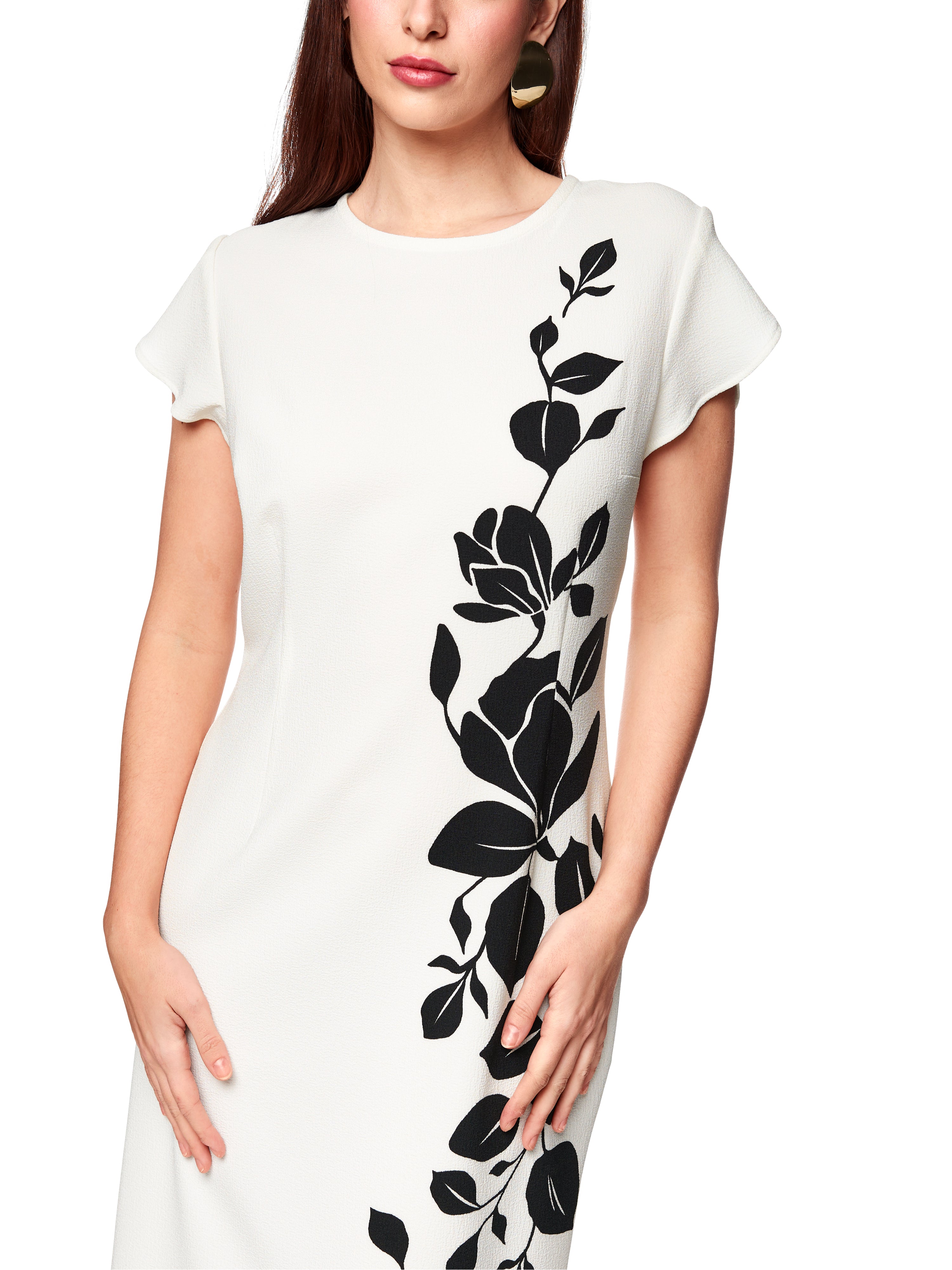 שמלת מידי עם הדפס פרחוני וצווארון במפתח עגול, סגירת ריצ'רץ בגב